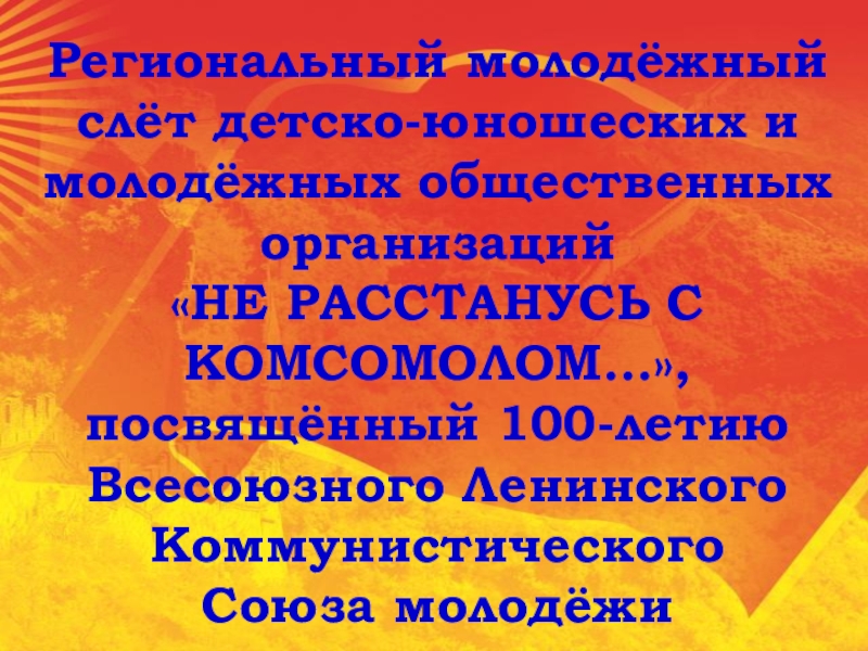 Слайд 1Региональный молодёжный слёт детско-юношеских и молодёжных общественных организаций