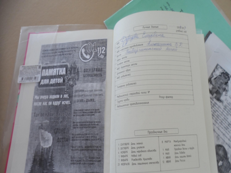 Оформление дневников учащихся памятками по пожарной безопасности.