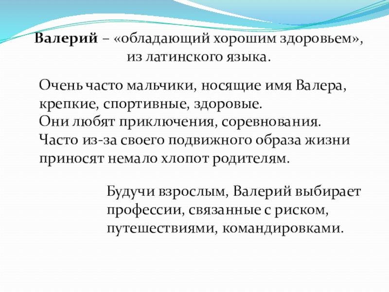 Будучи взрослым, Валерий выбирает