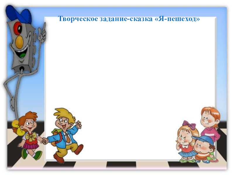 Слайд 12Творческое задание-сказка «Я-пешеход»
