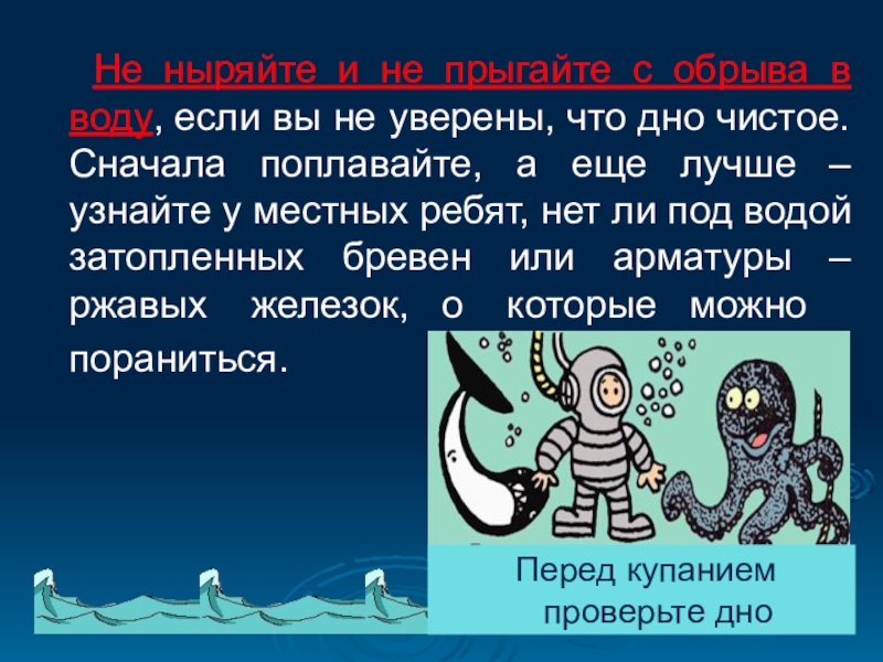 Перед купанием проверьте дно