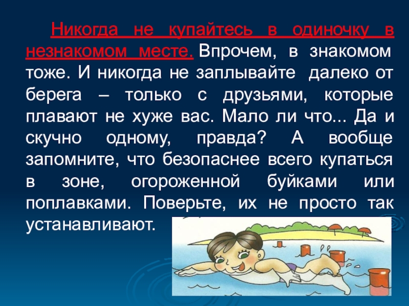 Будьте осторожны в воде.
