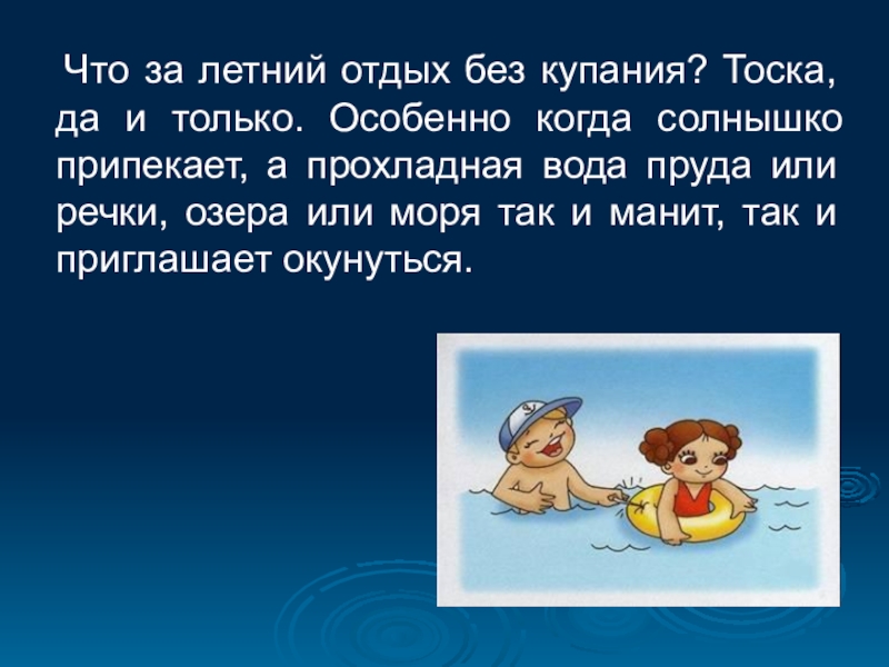 Не входите в воду разгорячёнными, лучше выждать какое-то время.