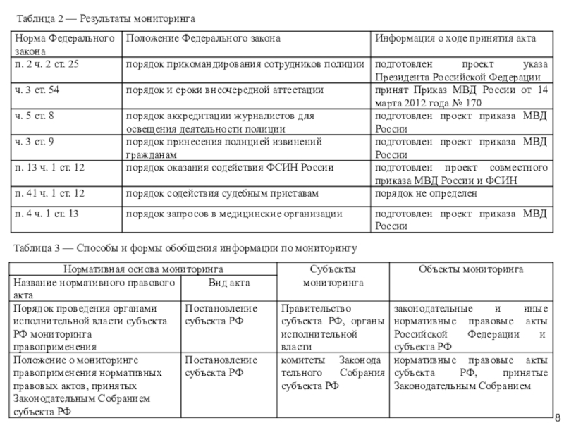 выявить сущность и содержание мониторинга правоприменения в Российской Федерации и на этой основе представить основные результаты действия российского законодательства о полиции;
