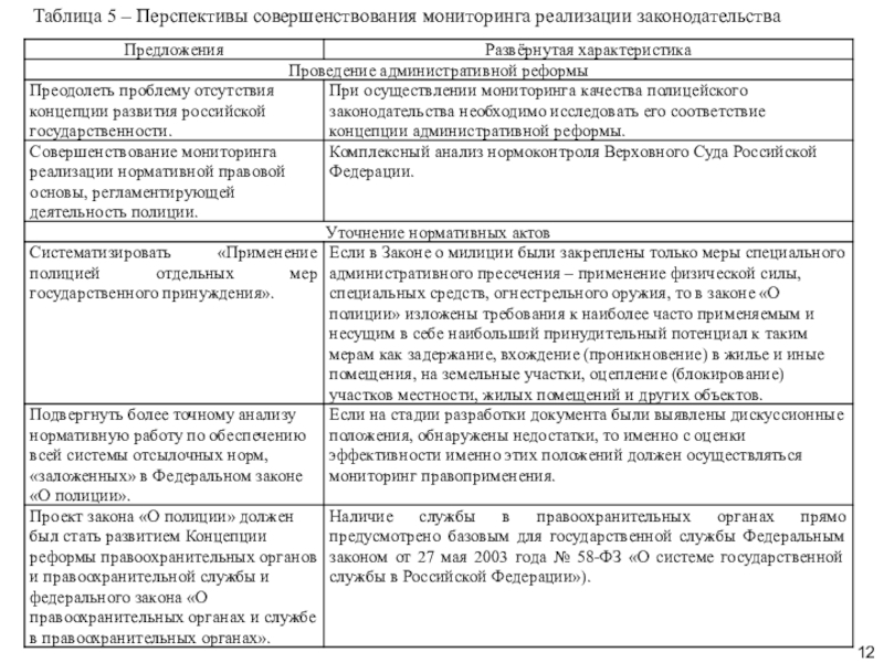 обосновать перспективы совершенствования мониторинга реализации законодательства о деятельности полиции.