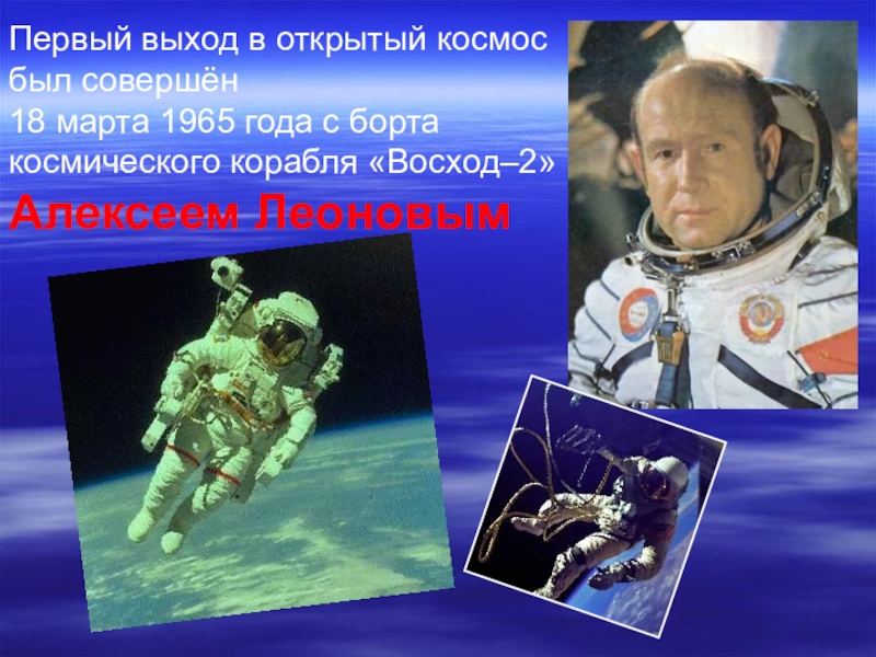 В 1965 году космонавт Алексей Леонов совершил первый в мире выход в открытый космос.