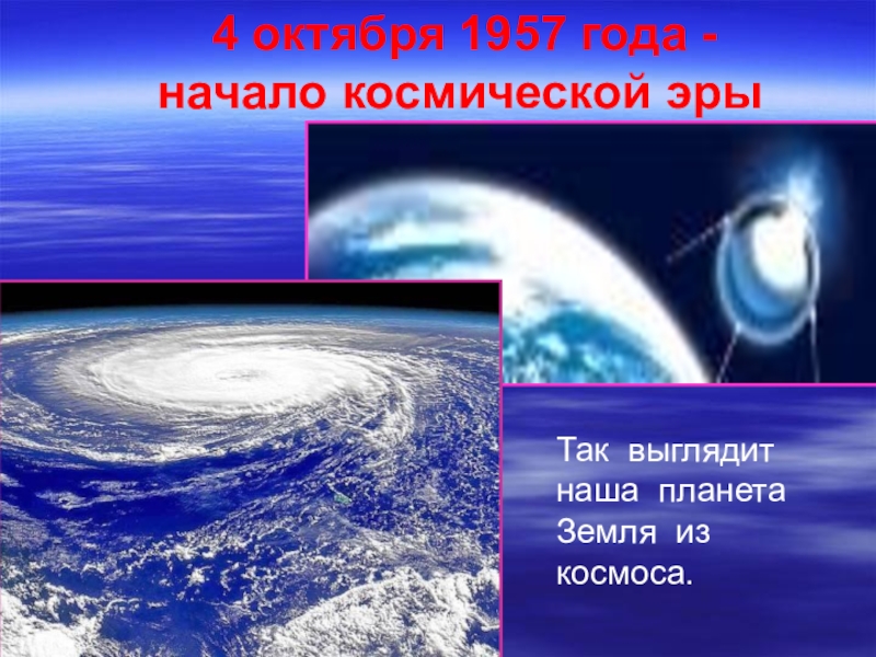 Октябрь 1957 года – начало космической эры – был запущен первый искусственный спутник Земли.