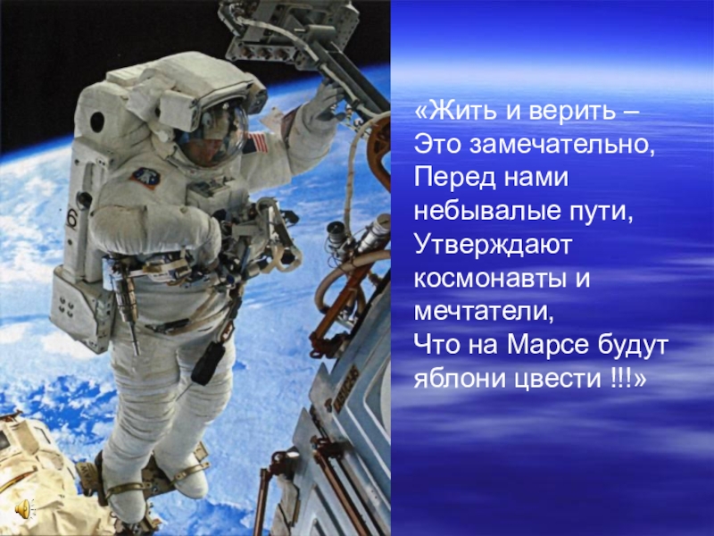 Из множества профессий, существующих на Земле, профессия космонавта самая опасная и ответственная. Это настоящий подвиг – научный, технический и ,прежде всего, человеческий.