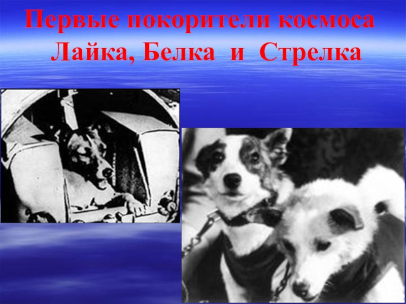 Через месяц – запущен спутник с собакой Лайкой, снабженный всем необходимым для жизни. Запуск спутников позволил начать изучение космического пространства. Январь 1959 года – был запущен искусственный спутник «Луна -1», он прошел около Луны и стал ее первым искусственным спутником. Август 1960 года – космический корабль, на борту –собаки Белка и Стрелка.