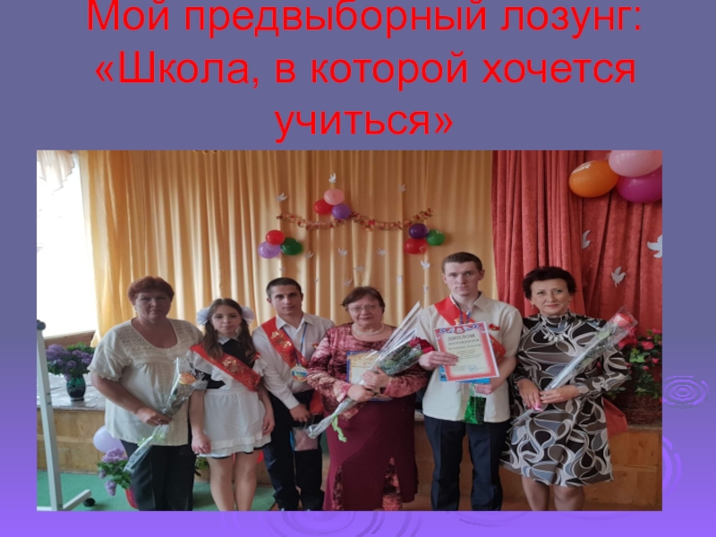Слайд 7Мой предвыборный лозунг: «Школа, в которой хочется учиться»