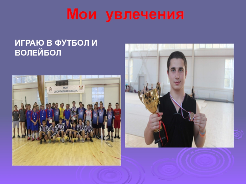 Мои увлечения ИГРАЮ В ФУТБОЛ И ВОЛЕЙБОЛ