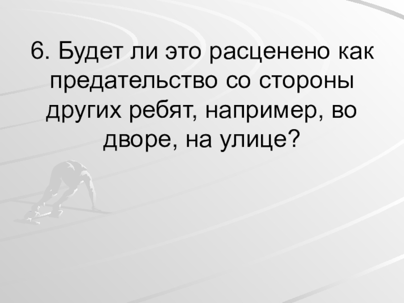 Слайд 456. Будет ли это расценено как предательство со стороны других ребят,
