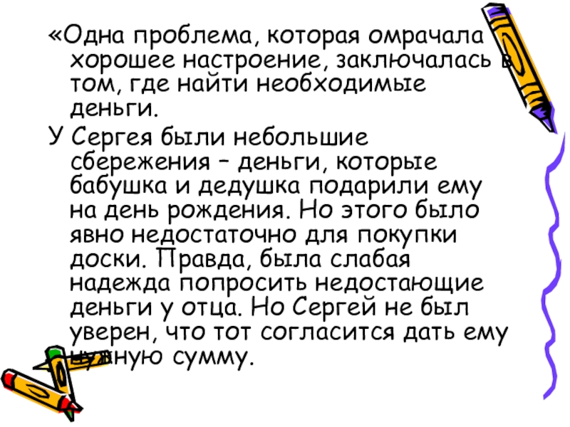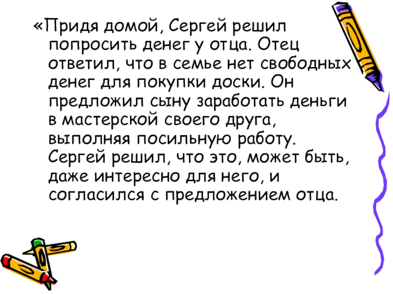 Слайд 37«Придя домой, Сергей решил попросить денег у отца. Отец ответил, что