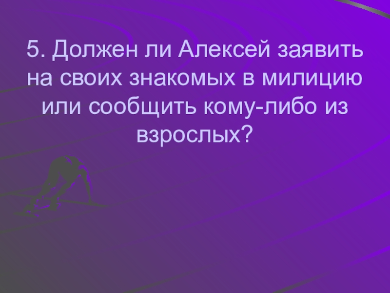 Слайд 445. Должен ли Алексей заявить на своих знакомых в милицию или