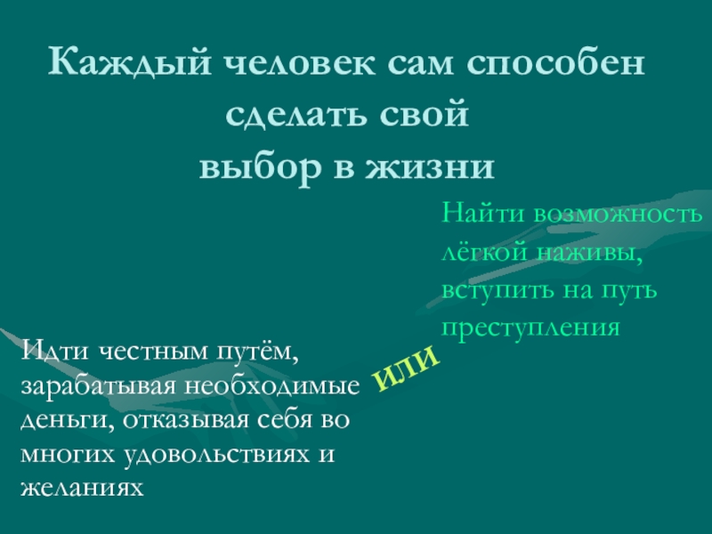 Идти честным путём, зарабатывая необходимые деньги, отказывая себя во многих удовольствиях и желаниях