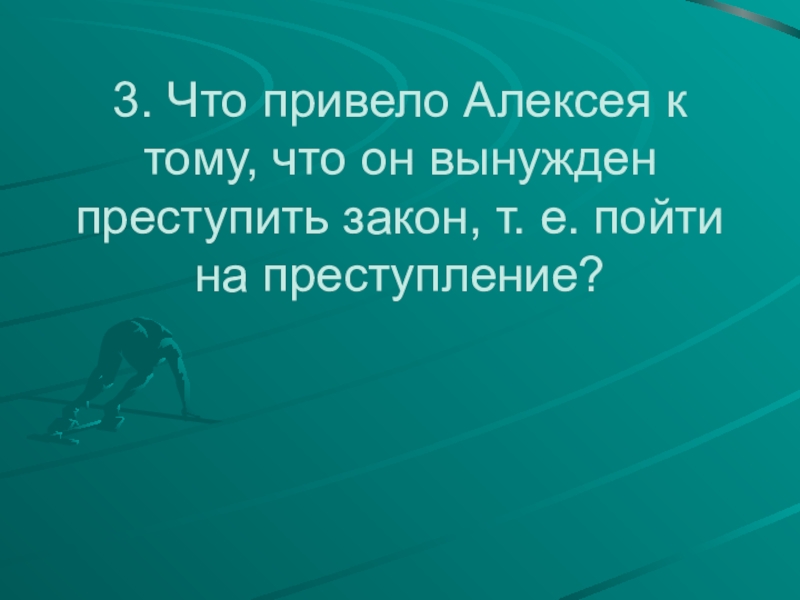Слайд 423. Что привело Алексея к тому, что он вынужден преступить закон,