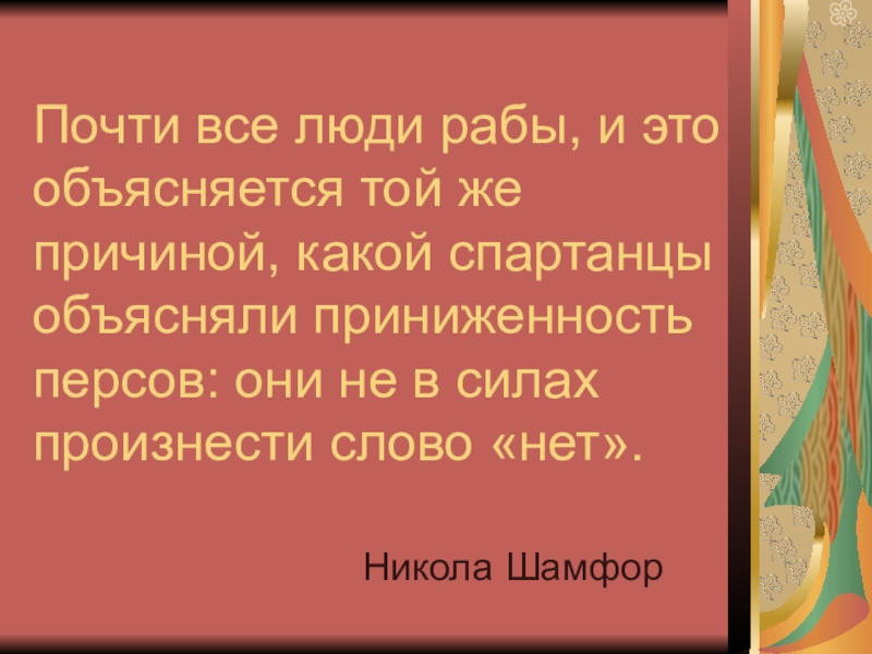 Слайд 2Почти все люди рабы, и это объясняется той же причиной, какой