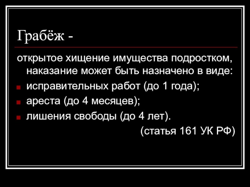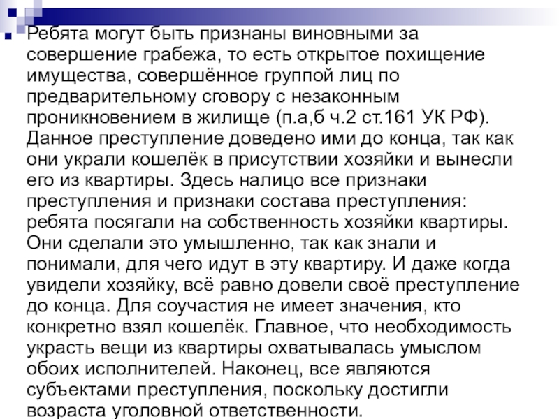 Слайд 58Ребята могут быть признаны виновными за совершение грабежа, то есть открытое
