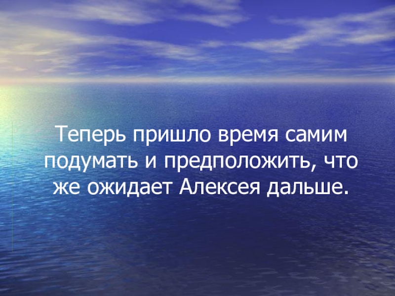 Слайд 56Теперь пришло время самим подумать и предположить, что же ожидает Алексея