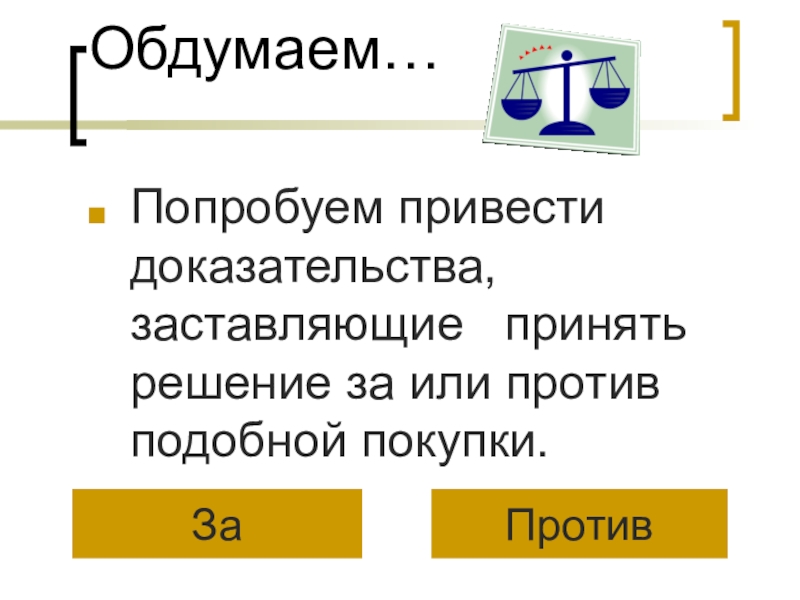 Попробуем привести доказательства, заставляющие принять решение за или против подобной