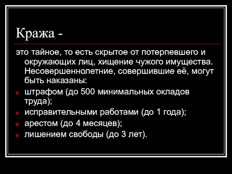 хищение чужого имущества. Несовершеннолетние, совершившие её, могут быть наказаны: