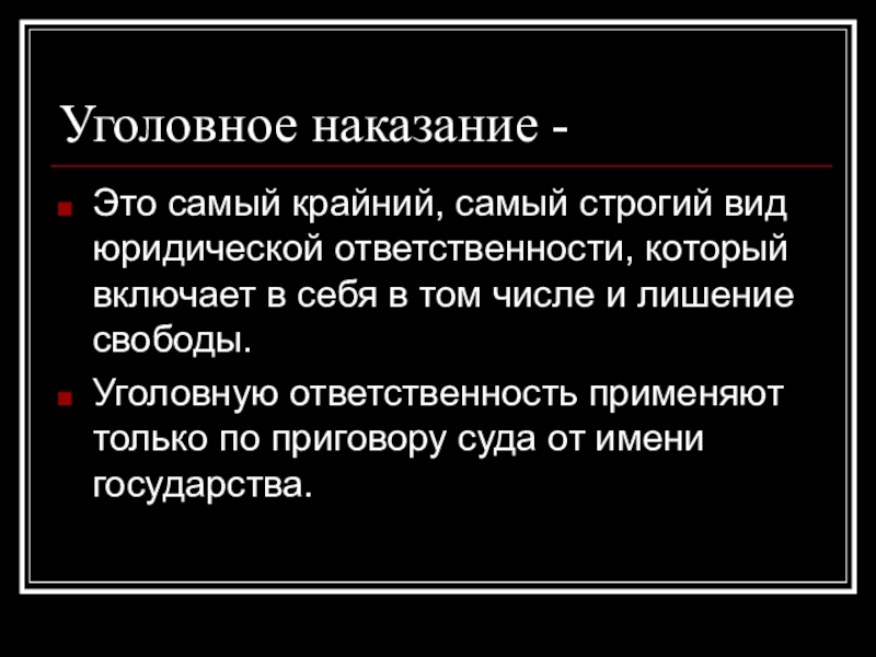 Это самый крайний, самый строгий вид юридической ответственности, который