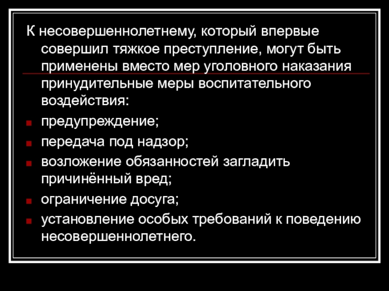 Слайд 51К несовершеннолетнему, который впервые совершил тяжкое преступление, могут быть применены вместо