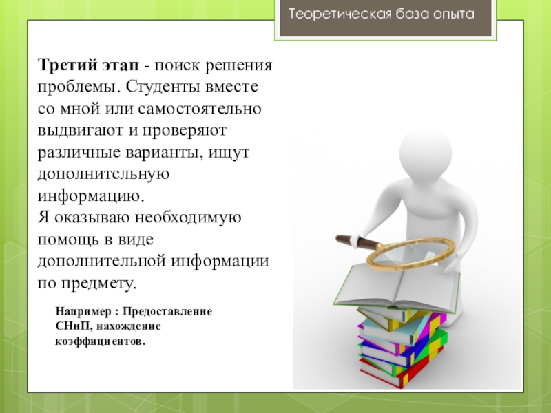 Например : Предоставление СНиП, нахождение коэффициентов.