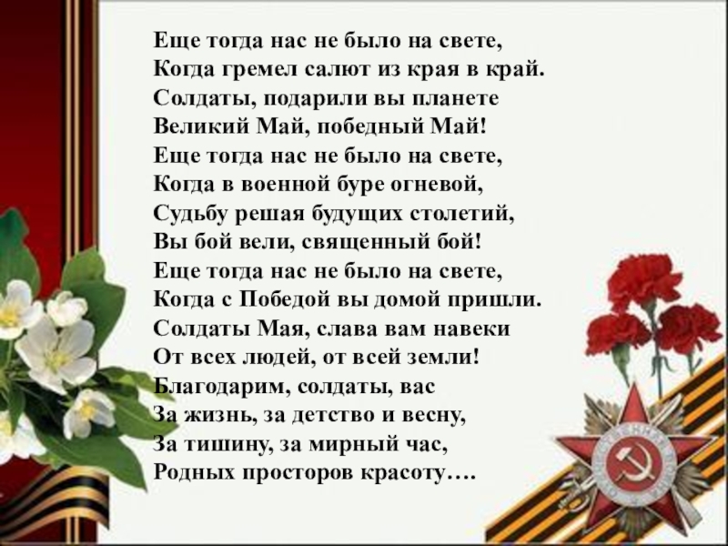 « Рядом с нами живут ветераны , что прошли по дорогам войны»