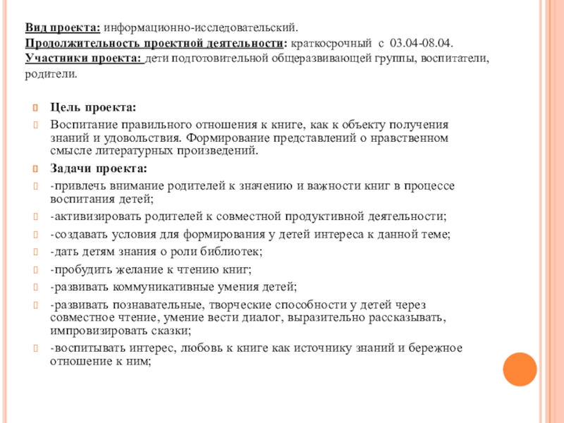 Продолжительность проектной деятельности: краткосрочный с 03.04-08.04.