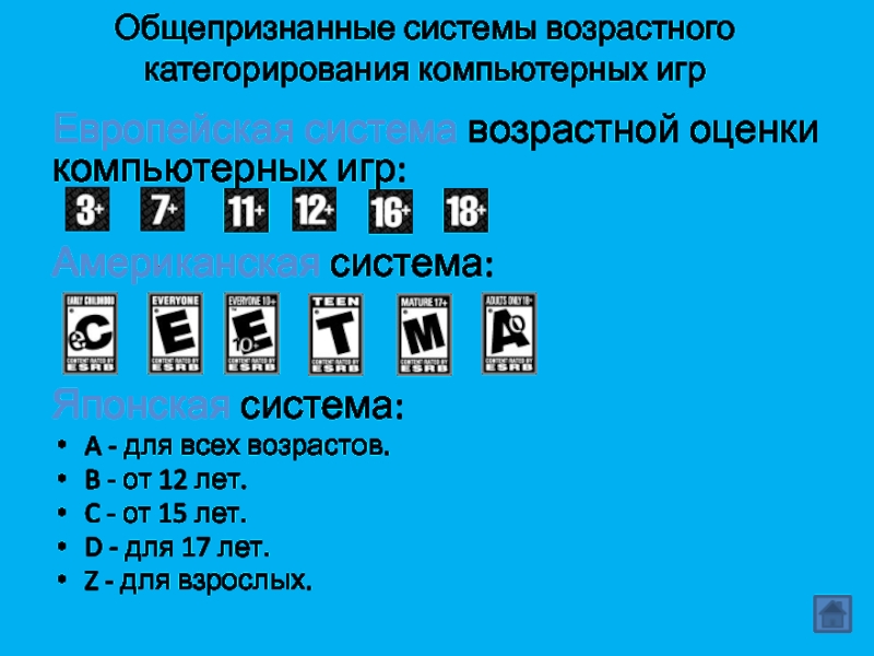 Слайд 9Общепризнанные системы возрастного категорирования компьютерных игр