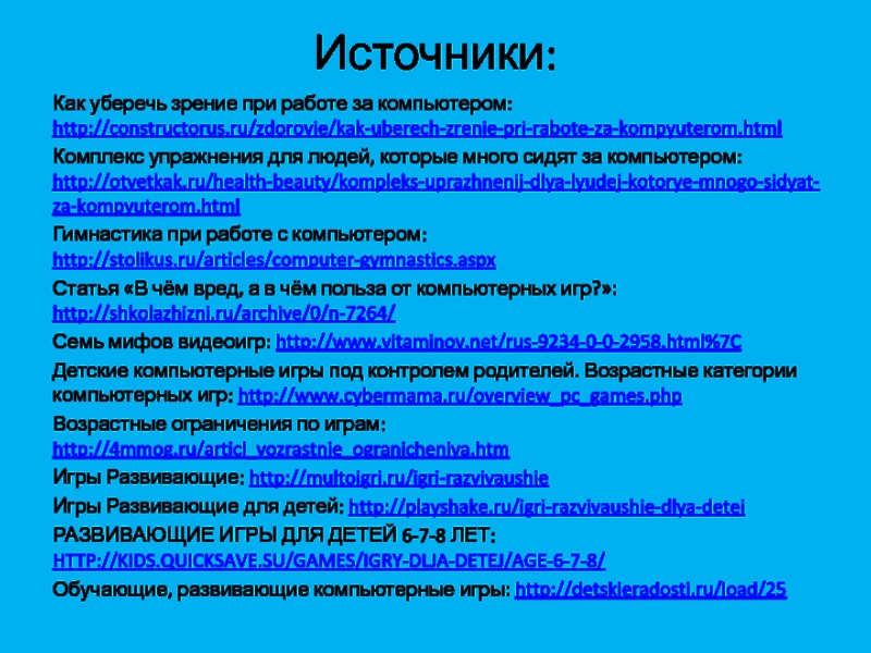 Статья «В чём вред, а в чём польза от компьютерных игр?»: http://shkolazhizni.ru/archive/0/n-7264/