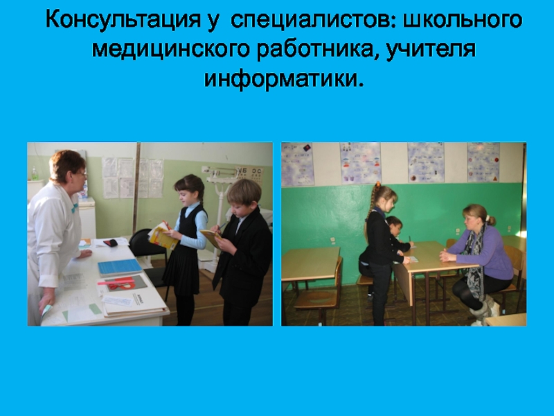 консультация у специалистов: школьного медицинского работника, учителя информатики,
