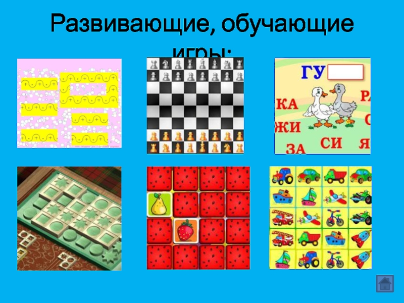 Выбиратьигрыразвивающие, логические, обучающие, интеллектуальные.
