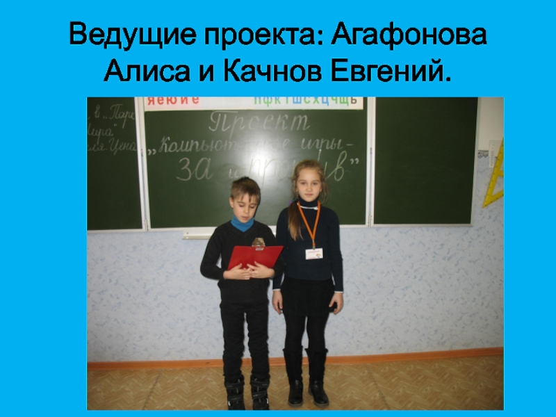 Слайд 2Ведущие проекта: Агафонова Алиса и Качнов Евгений.