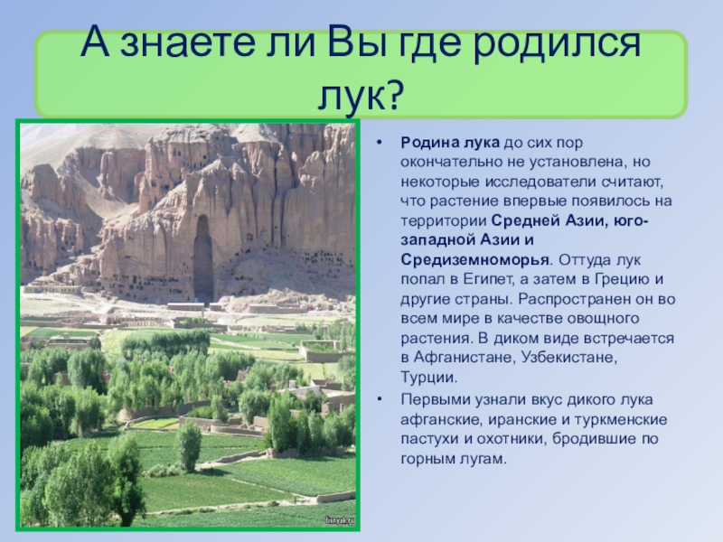 Первыми узнали вкус дикого лука афганские, иранские и туркменские пастухи и охотники, бродившие по горным лугам.