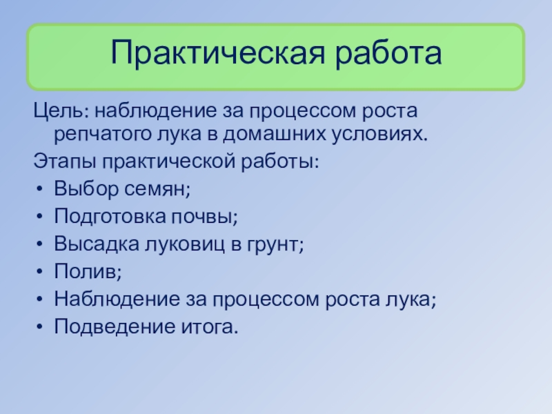 Цель: наблюдение за процессом роста репчатого лука в домашних условиях.