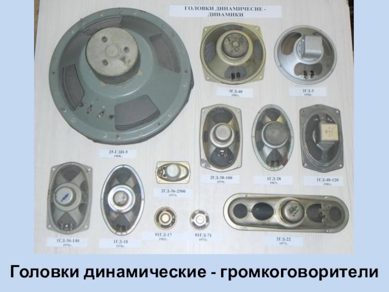 Слайд 34Головки динамические - громкоговорители