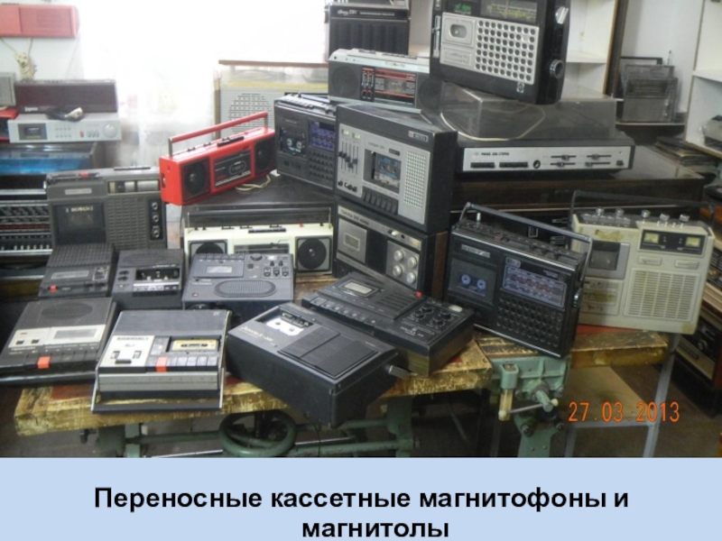 Слайд 27Переносные кассетные магнитофоны и магнитолы