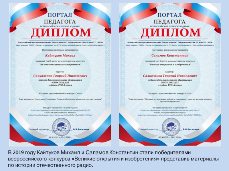 конкурса «Великие открытия и изобретения» представив материалы по истории отечественного радио.