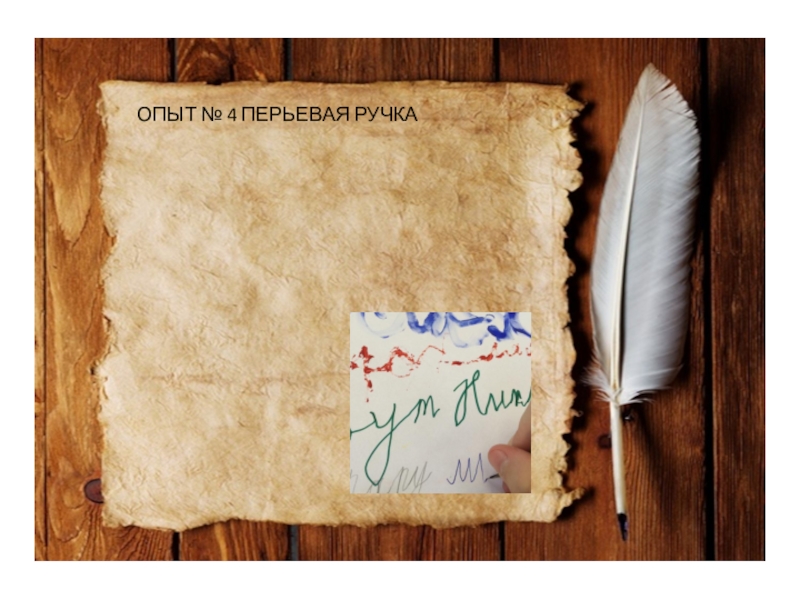 Слайд 11ОПЫТ № 4 ПЕРЬЕВАЯ РУЧКА