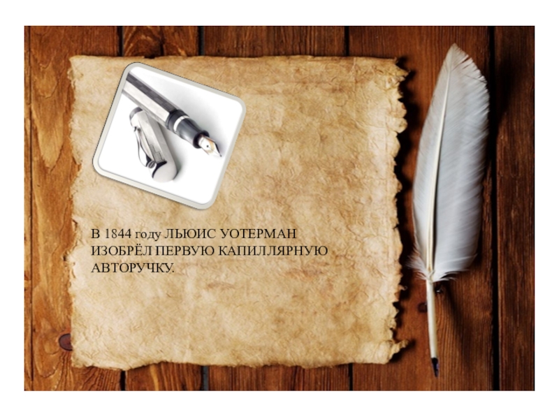 В 1844 году ЛЬЮИС УОТЕРМАНИЗОБРЁЛ ПЕРВУЮ КАПИЛЛЯРНУЮ АВТОРУЧКУ.