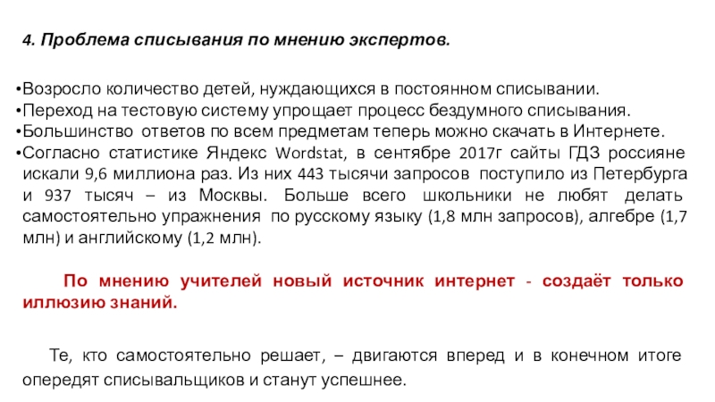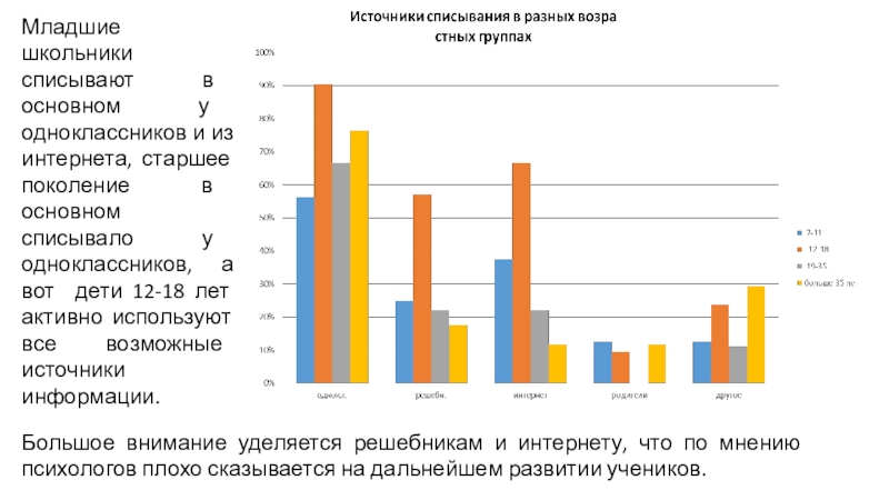 Большое внимание уделяется решебникам и интернету, что по мнению психологов плохо сказывается на дальнейшем развитии учеников.