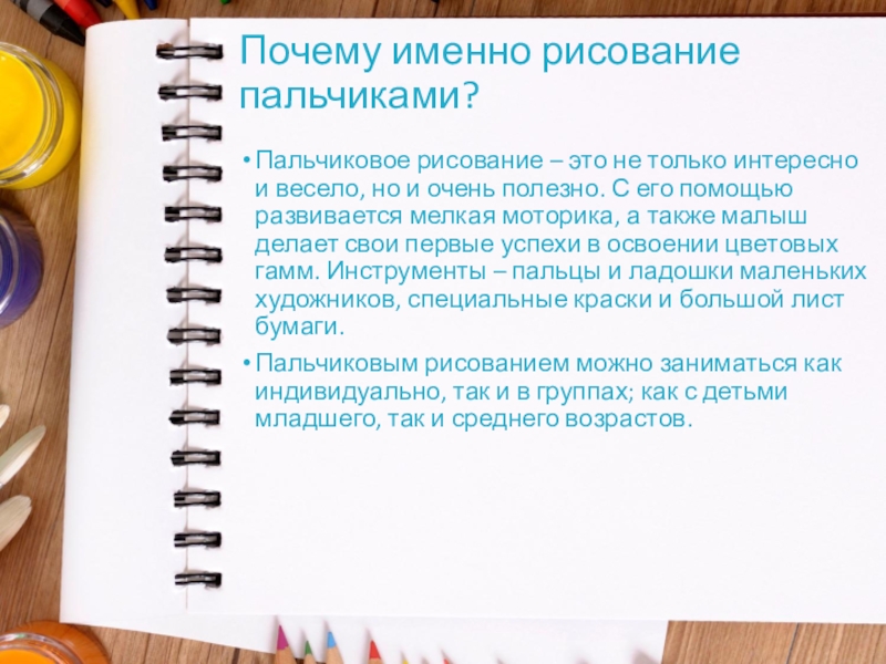 Почему именно рисование пальчиками?Пальчиковое рисование – это не только интересно и весело, но и очень полезно. С