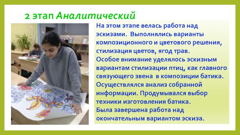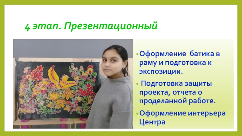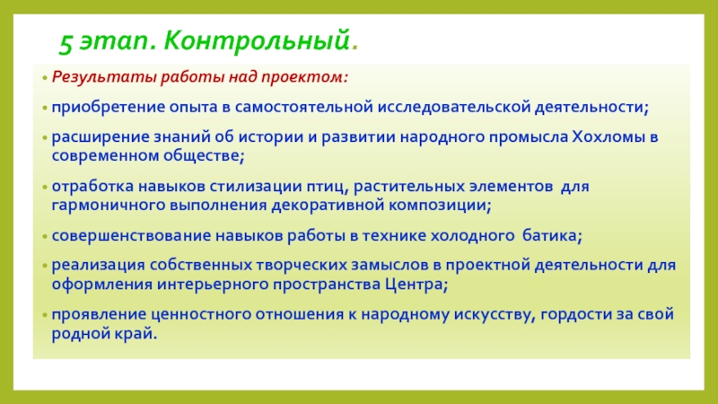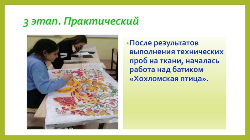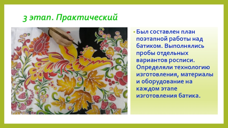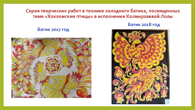 познакомиться с богатым наследием народного искусства, изучить особенности хохломской росписи и отразить ее полноту и многогранность в батике.