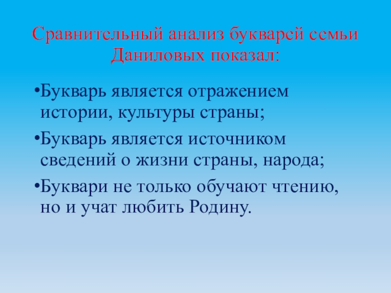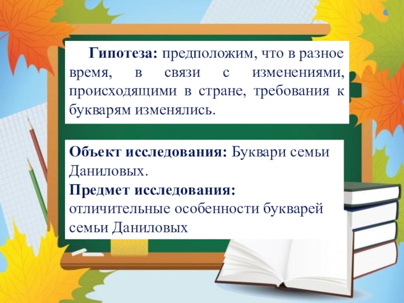 Предмет исследования: отличительные особенности букварей семьи Даниловых