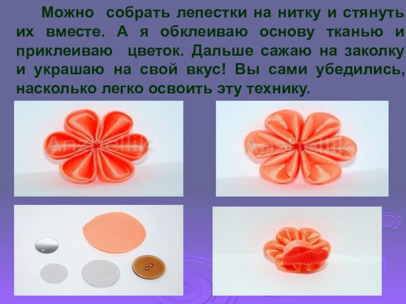 Слайд 17 Можно собрать лепестки на нитку и стянуть их