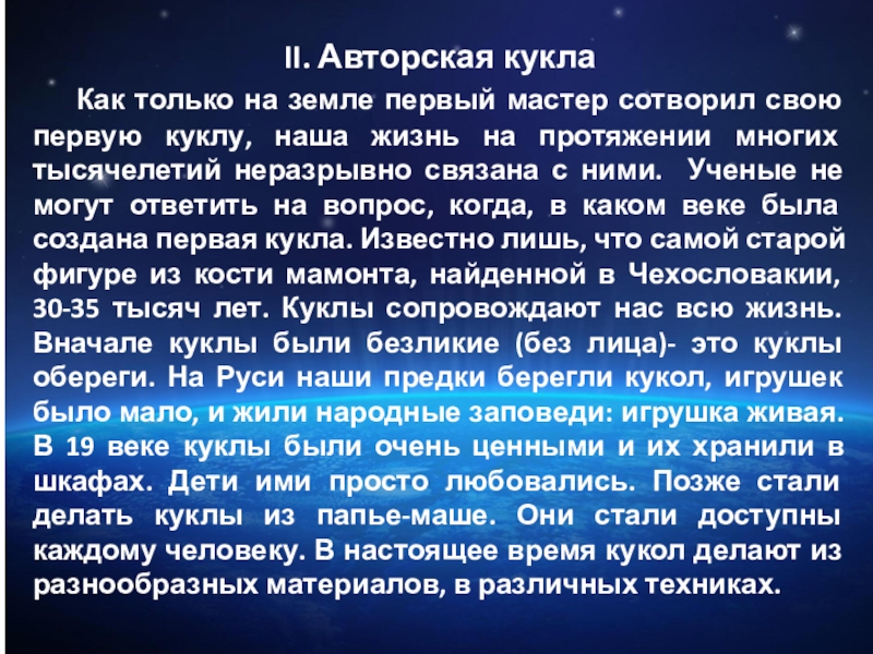 Слайд 7II. Авторская кукла