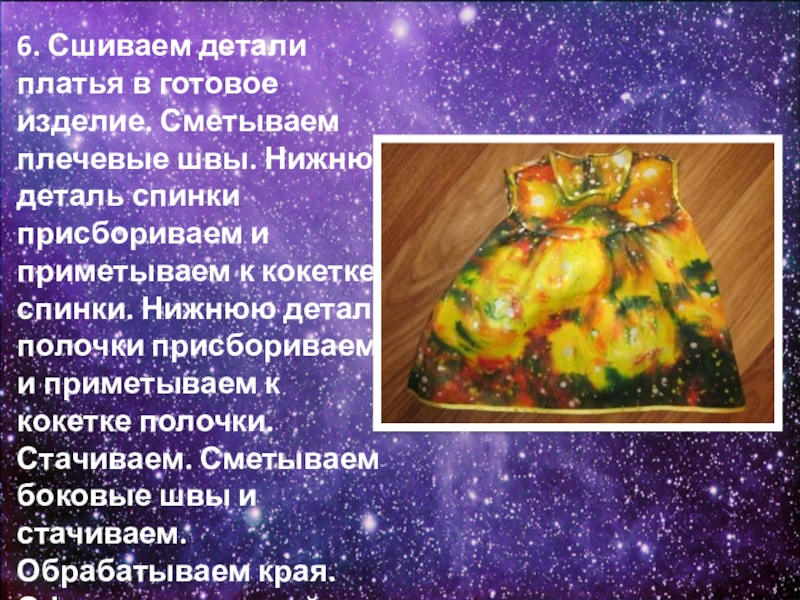 Слайд 166. Сшиваем детали платья в готовое изделие. Сметываем плечевые швы. Нижнюю
