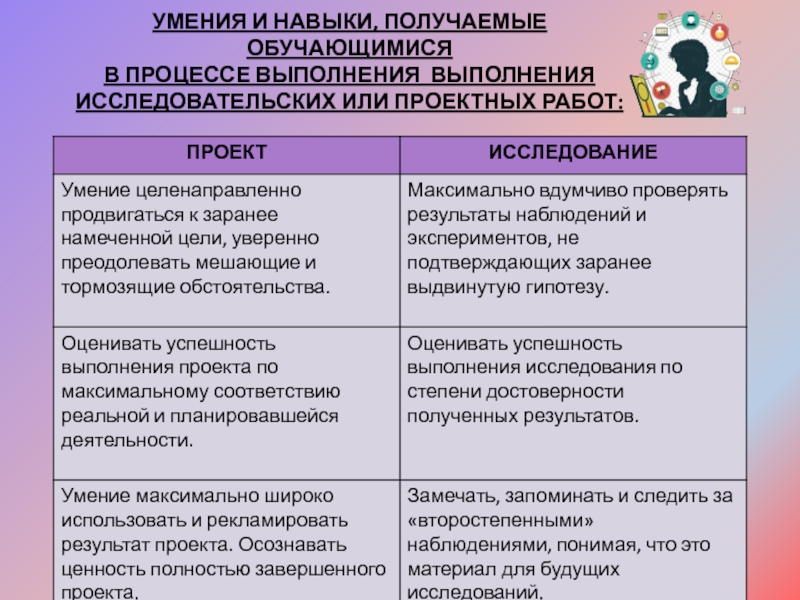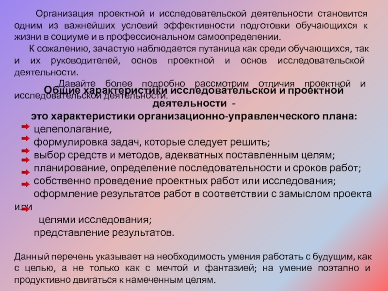 Данный перечень указывает на необходимость умения работать с будущим, как с целью, а не только как с мечтой и фантазией; на умение поэтапно и продуктивно двигаться к намеченным целям.